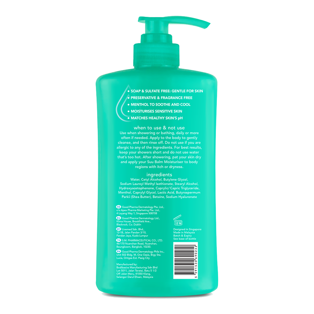 Suu Balm Dual Cooling and Moisturising Cream Body Wash membersihkan kulit sensitif dan kering dengan lembut, membuat kulit terasa segar dan bebas gatal. Suu Balm Body Wash tidak mengandung sabun, sulfat, pewangi, paraben, dan pengawet. Dapat dipakai untuk semua jenis kulit, khususnya kulit sensitif.